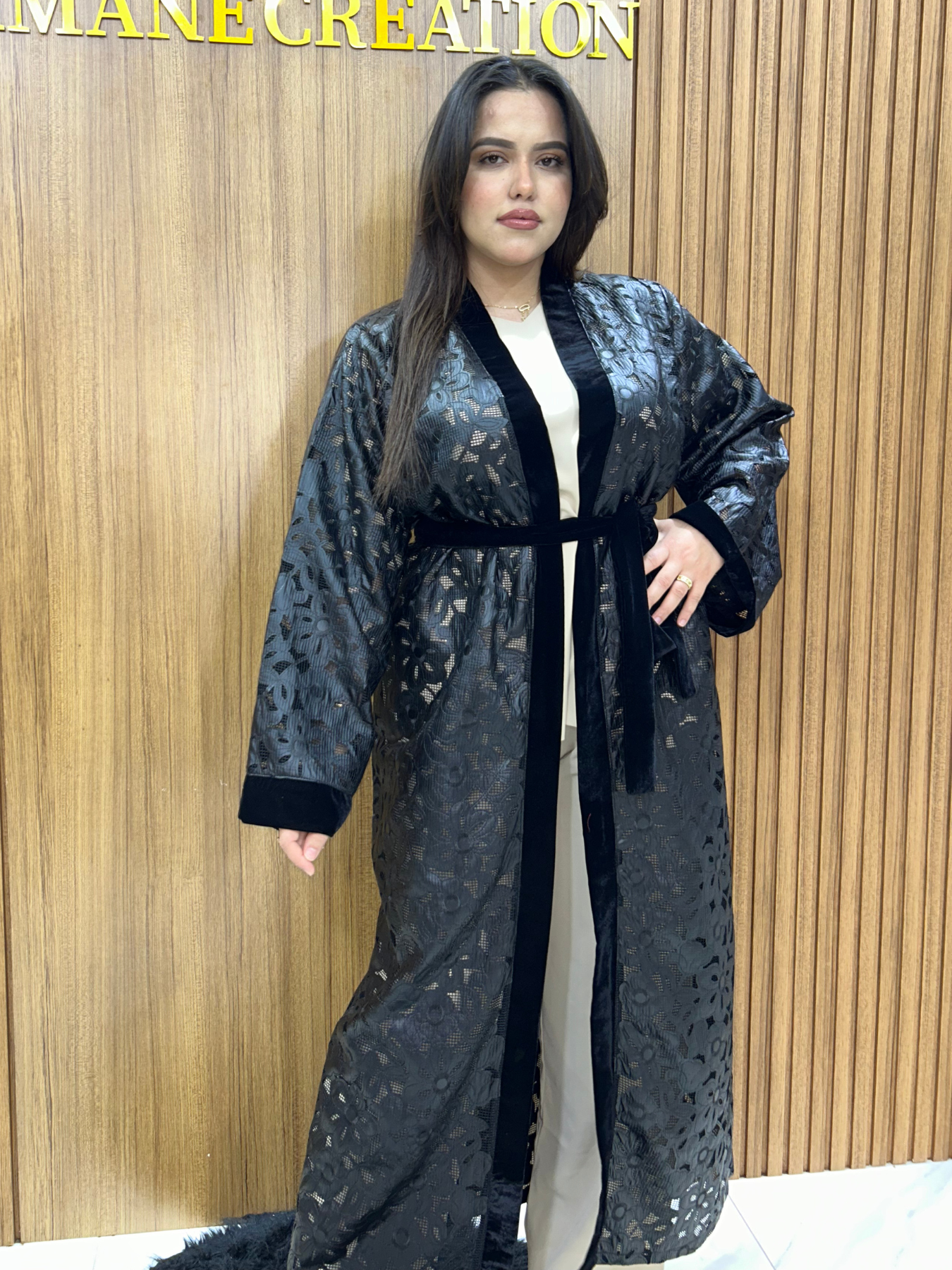 Sublimez votre allure avec cette robe kimono longue, confectionnée dans un tissu léger et raffiné qui allie élégance et confort. Sa coupe fluide épouse délicatement la silhouette, tandis que les motifs ajourés et les finitions soignées apportent une touche sophistiquée.